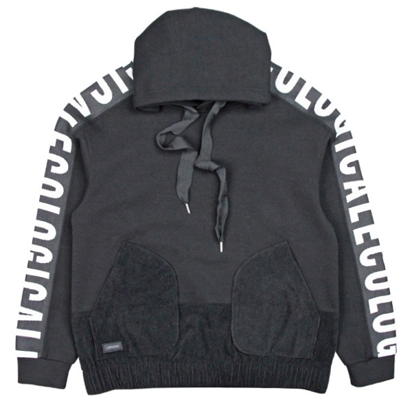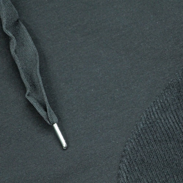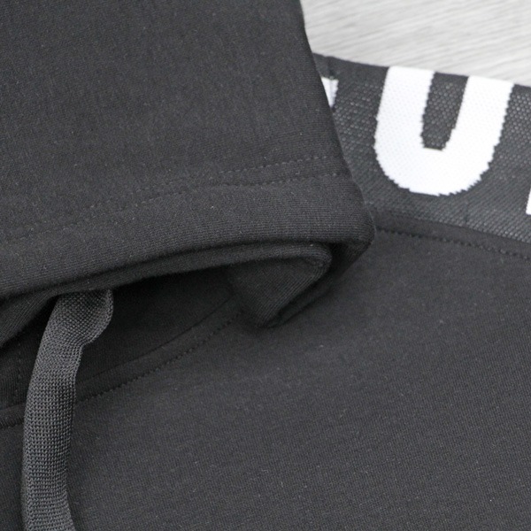 112272雙袖織帶前幅拼接絨布口袋連帽衛衣-黑色