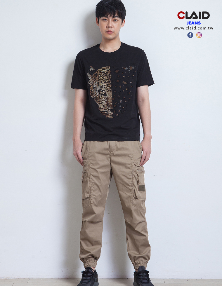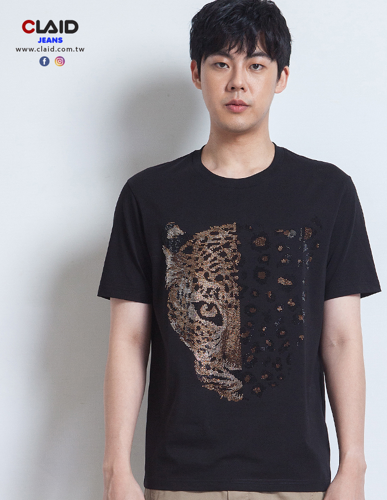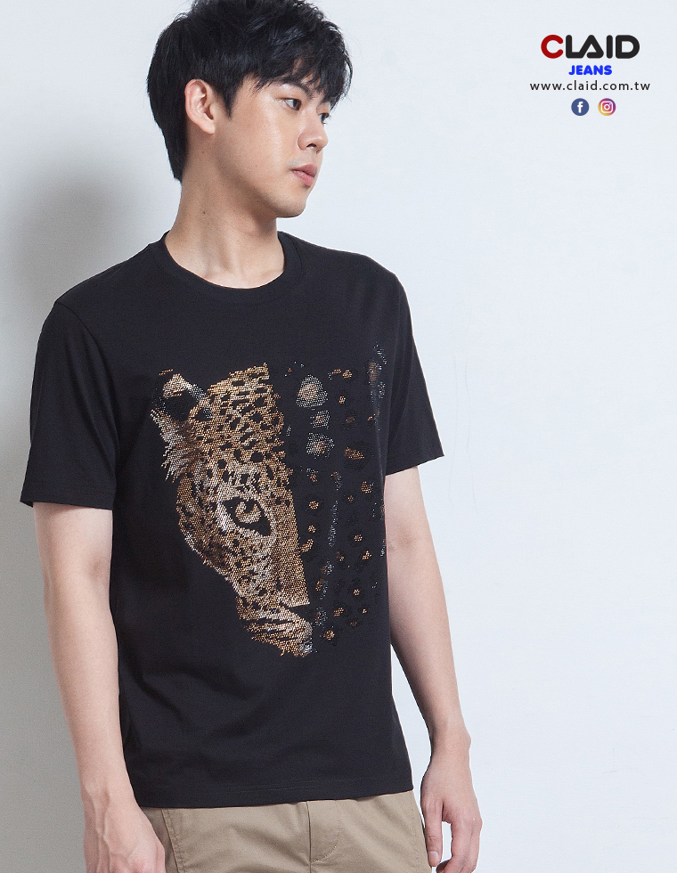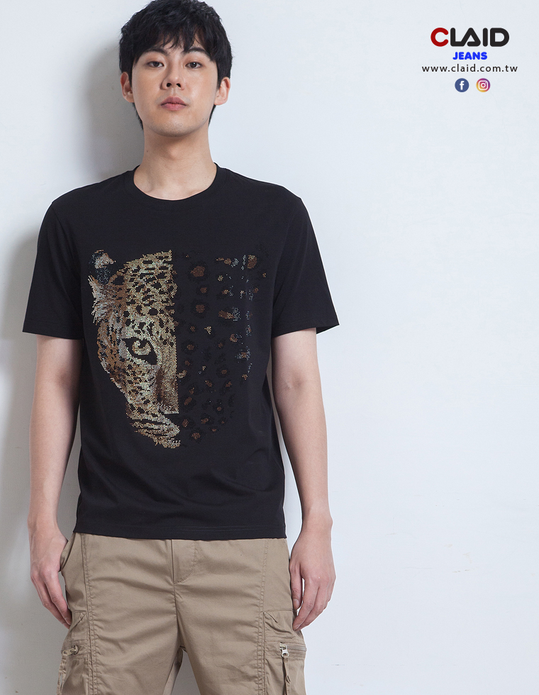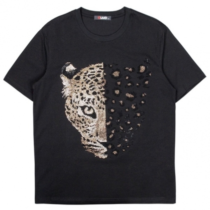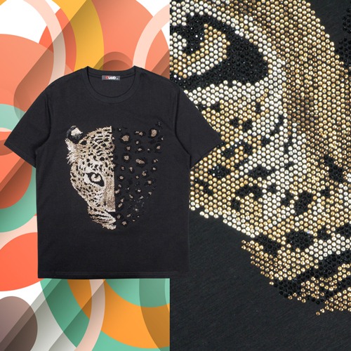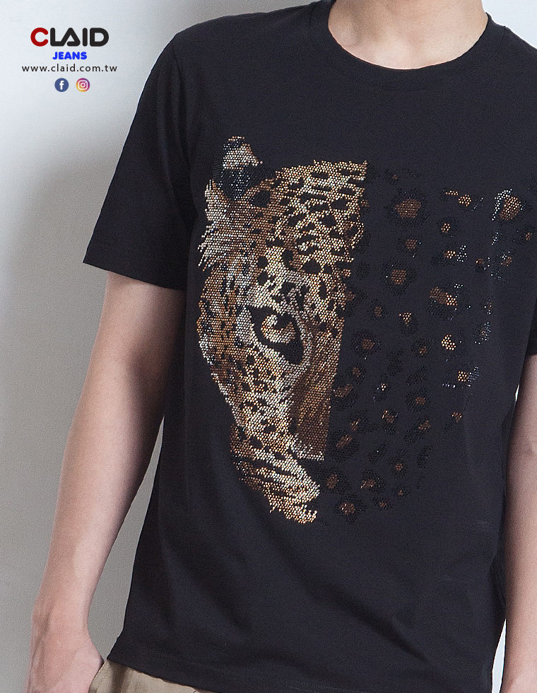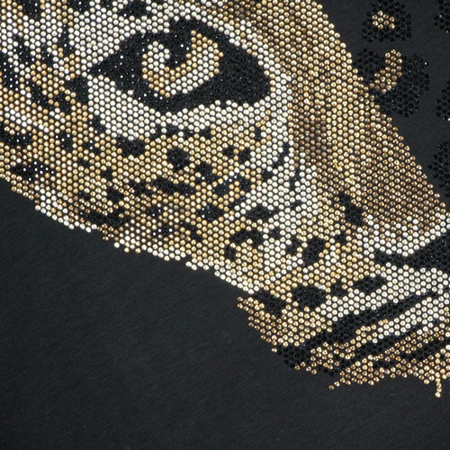 141202數碼定位半臉花豹鑲鑽點綴數碼印花工藝T恤