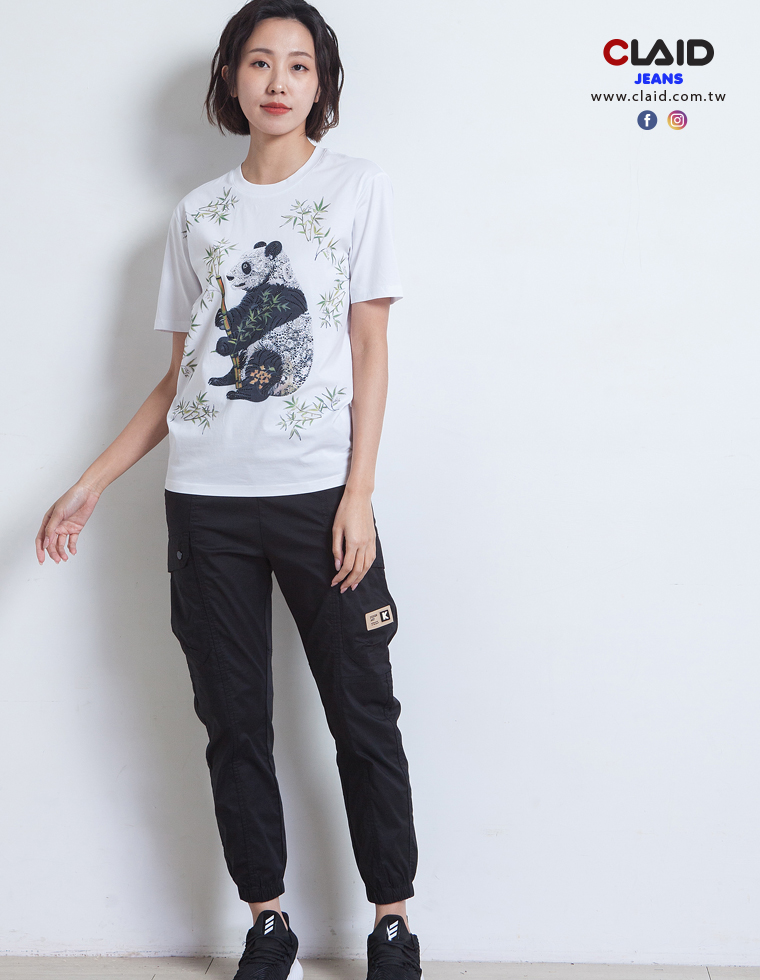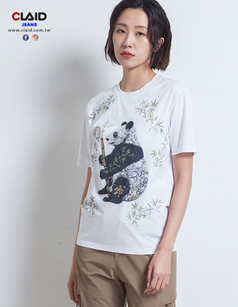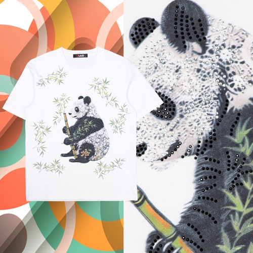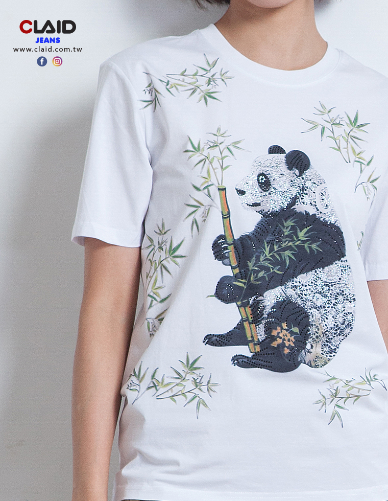 141207數碼定位竹林熊貓鑲鑽點綴數碼印花工藝T恤