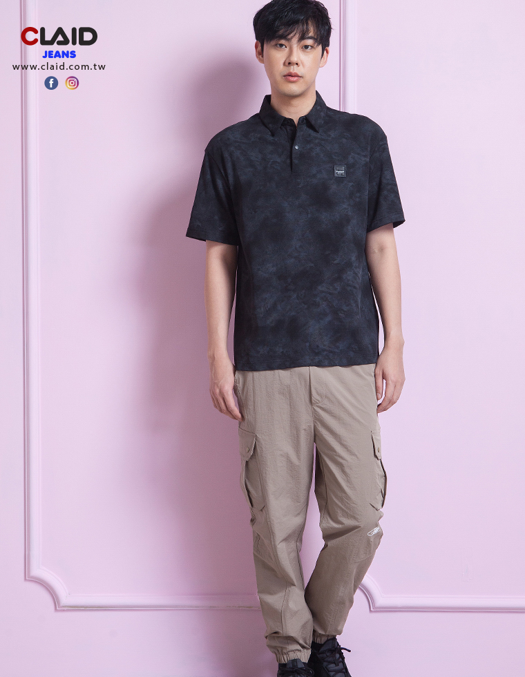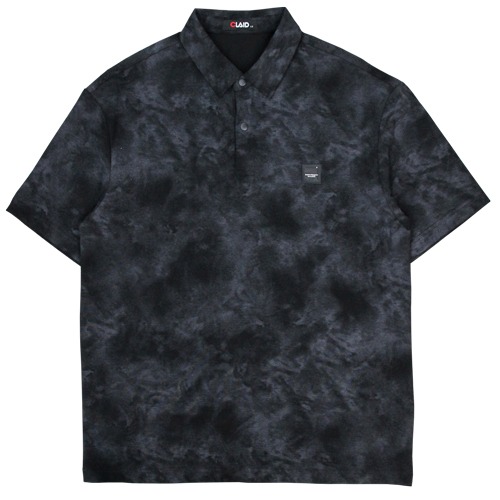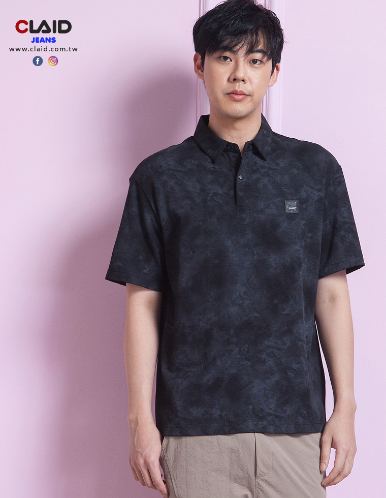 141215寬鬆版型珠地面料滿版暈染元素POLO衫-黑色