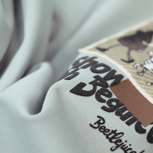 ✔️工藝: 貼布繡設計,雨傘女孩與狗圖騰,展現輕快愜意的時尚風采。