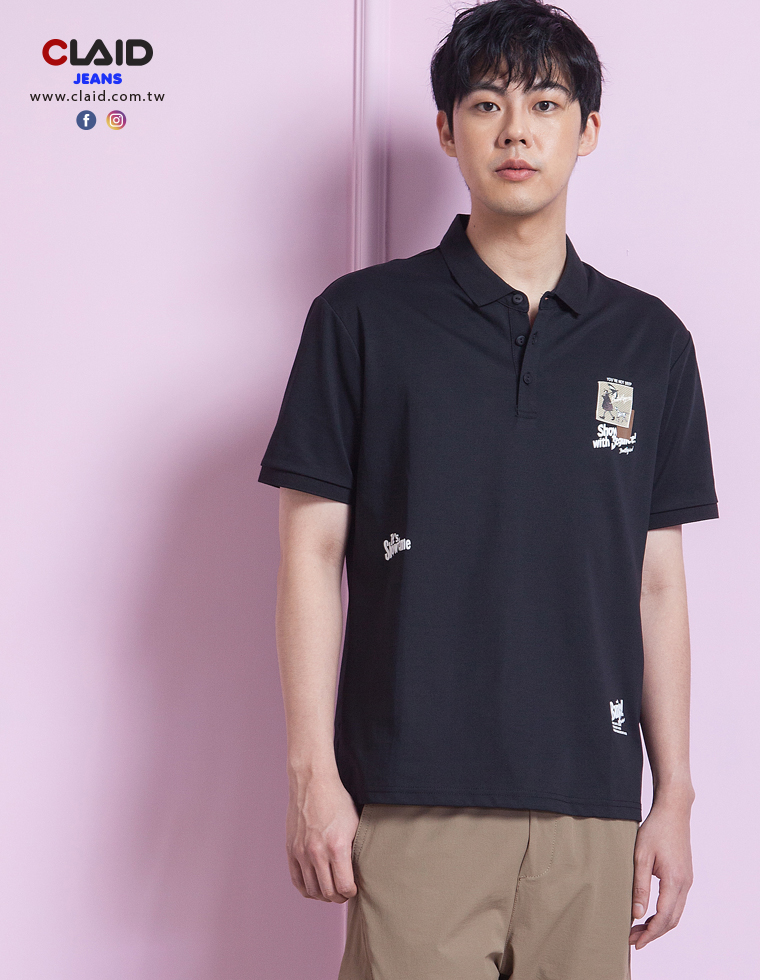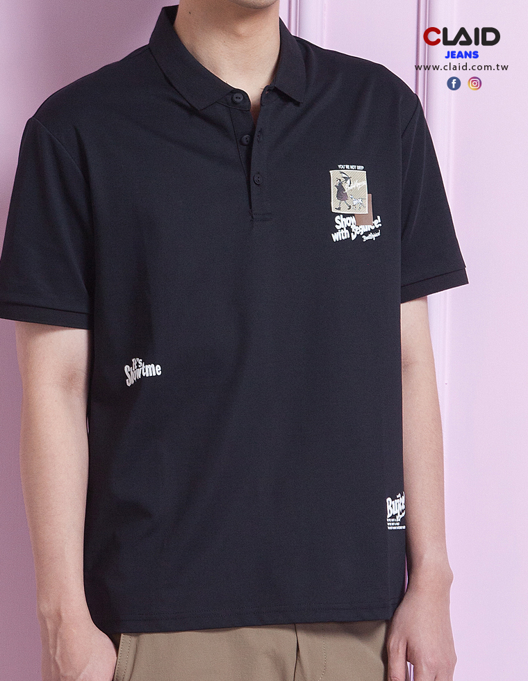 141217涼感棉料貼布繡元素POLO衫-黑色