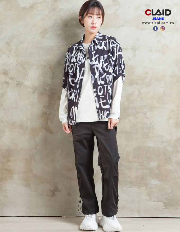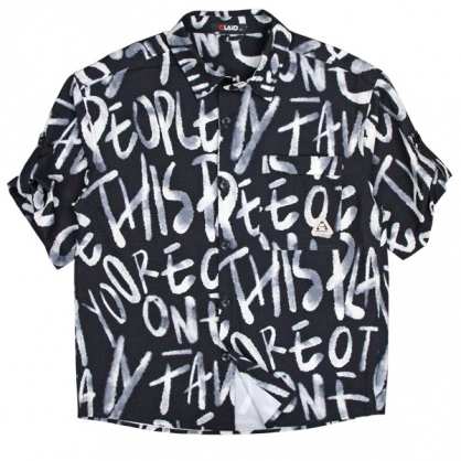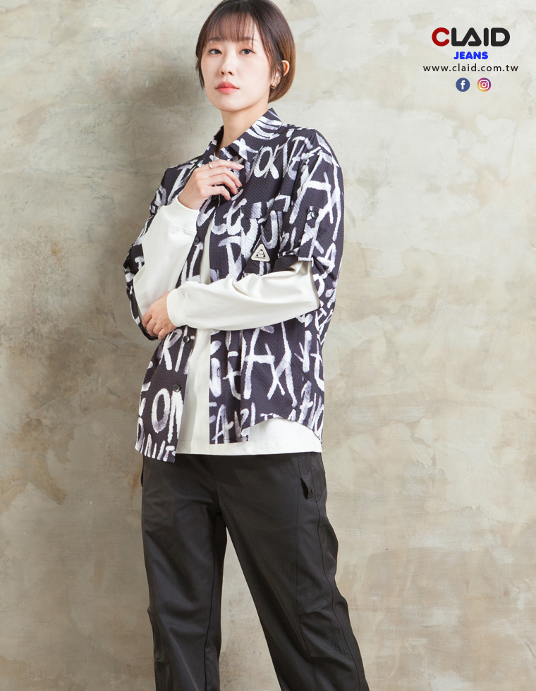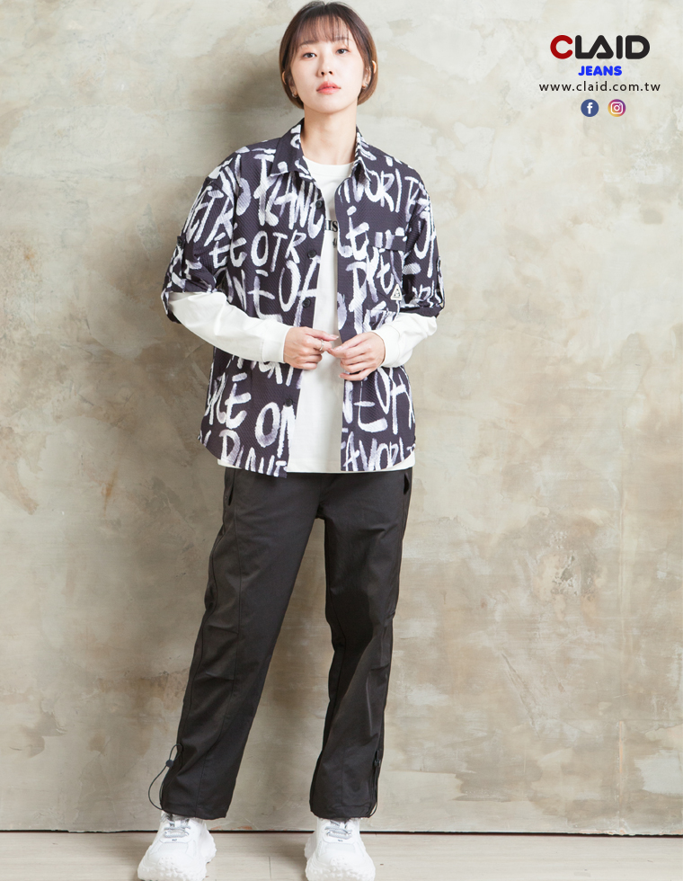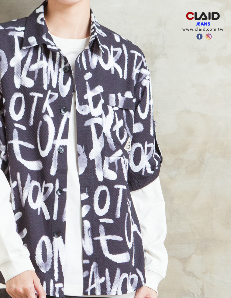 141312滿版大寫字母元素印花中鬆版型舒適花襯衫