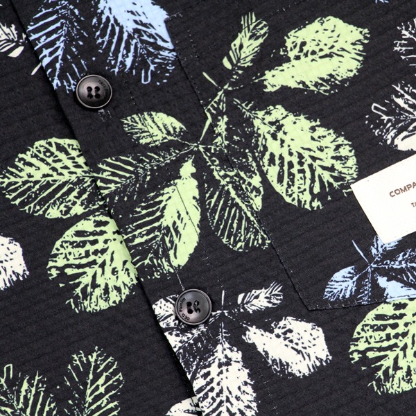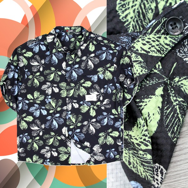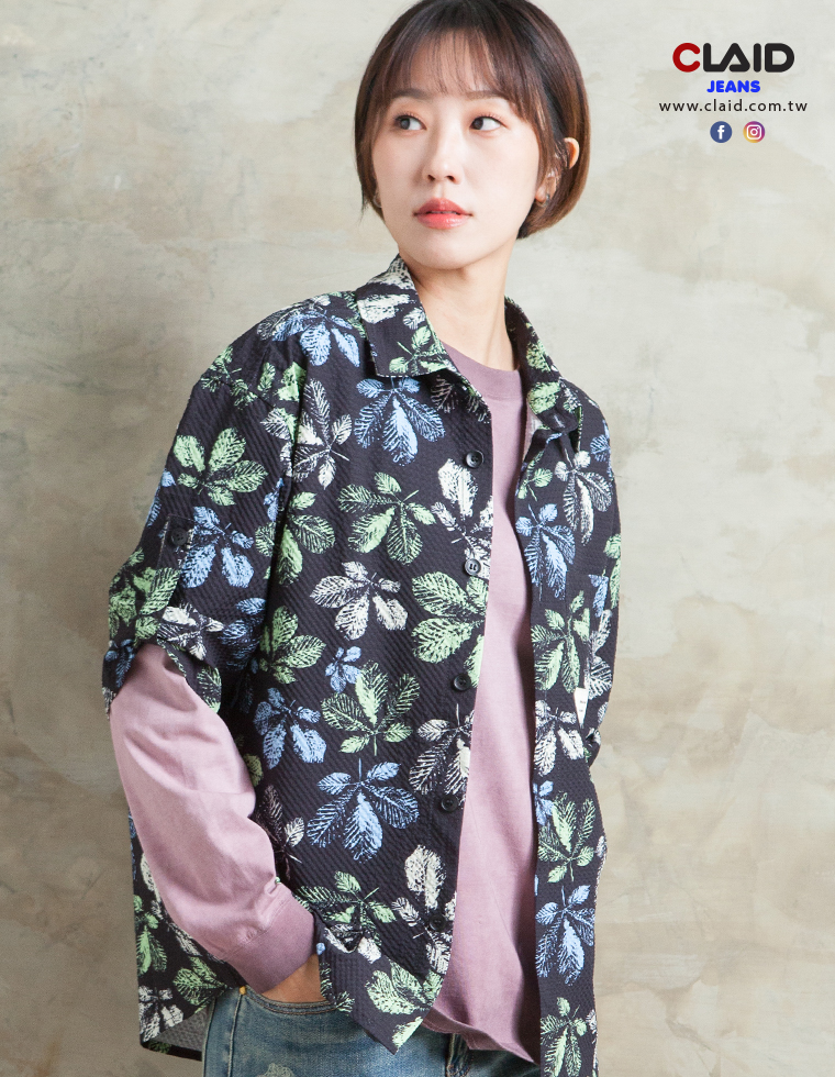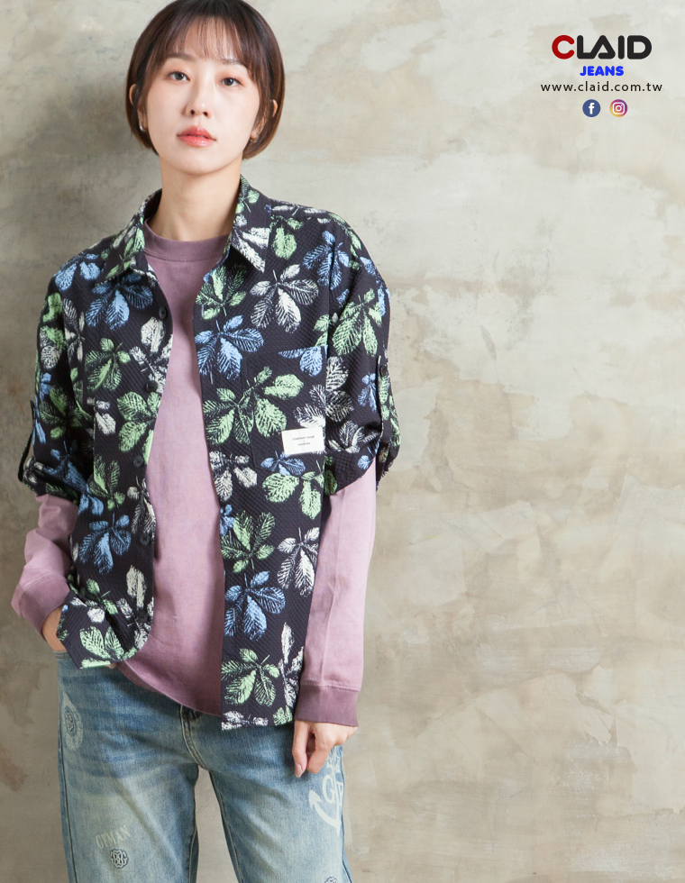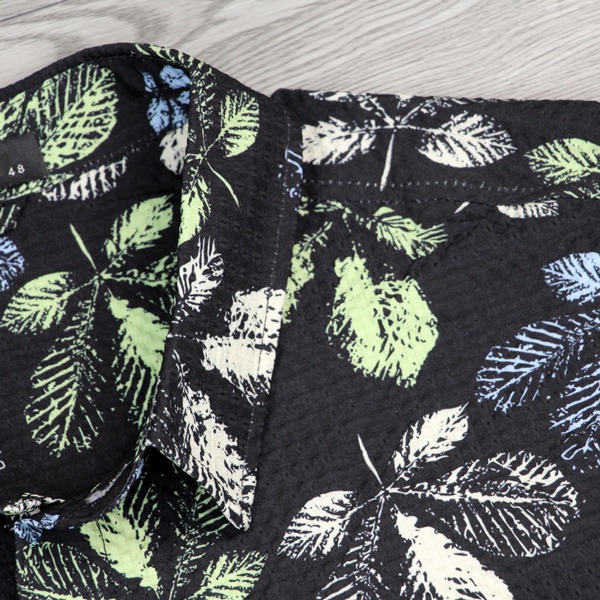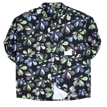 141315滿版樹葉印花中鬆版型舒適花襯衫-黑色