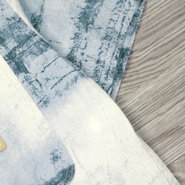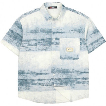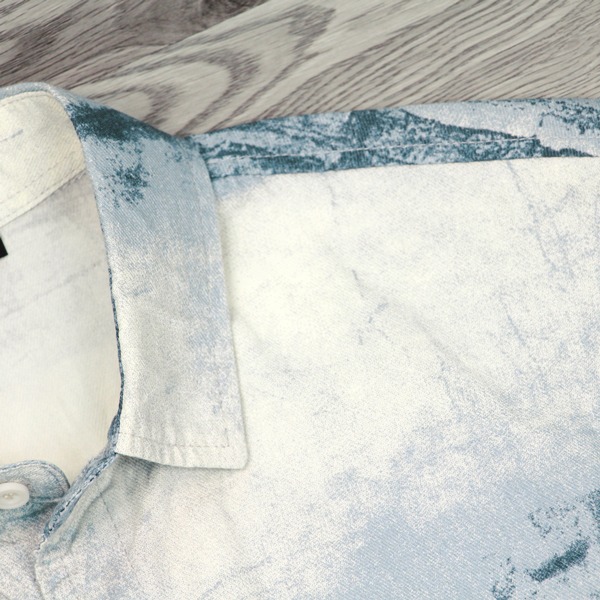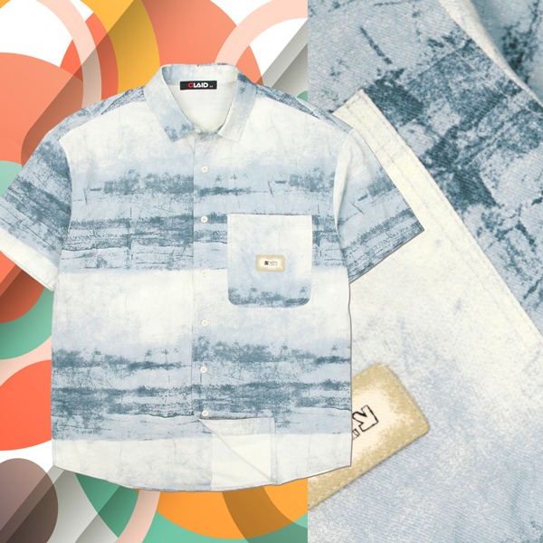 141351滿版水墨元素中鬆版型棉料花襯衫-淺藍