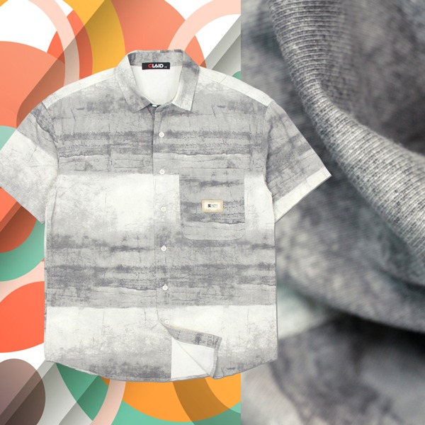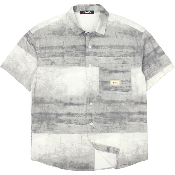 141351滿版水墨元素中鬆版型棉料花襯衫-灰色