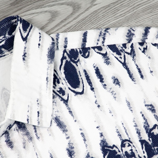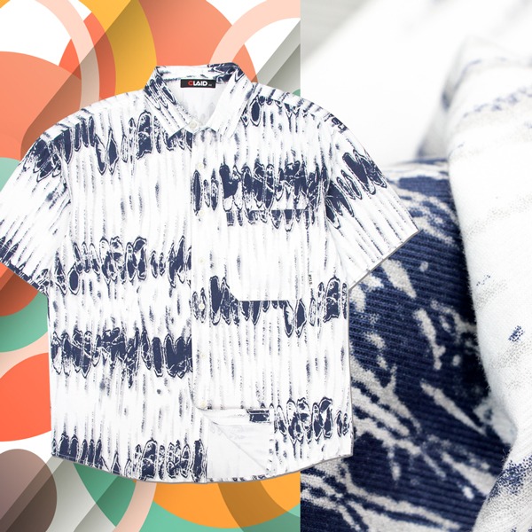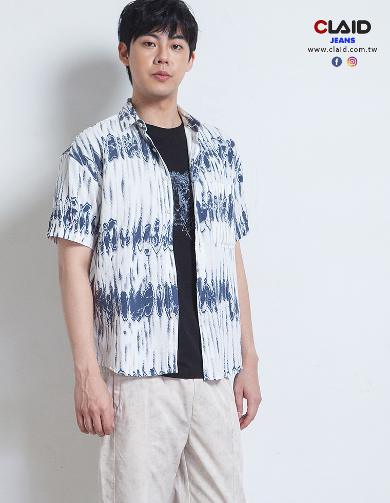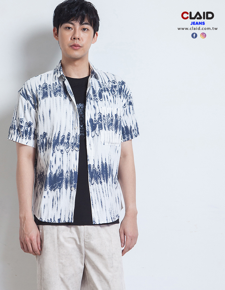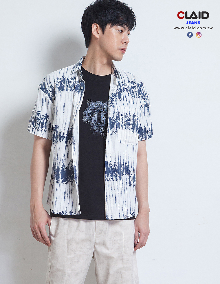 141352滿版垂直刷紋元素中鬆版型棉料花襯衫