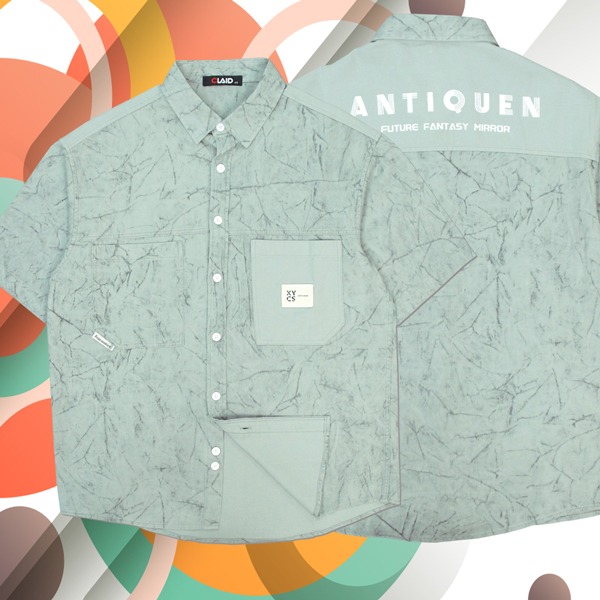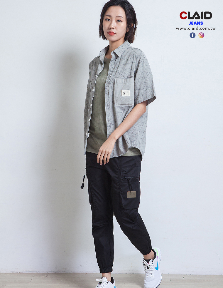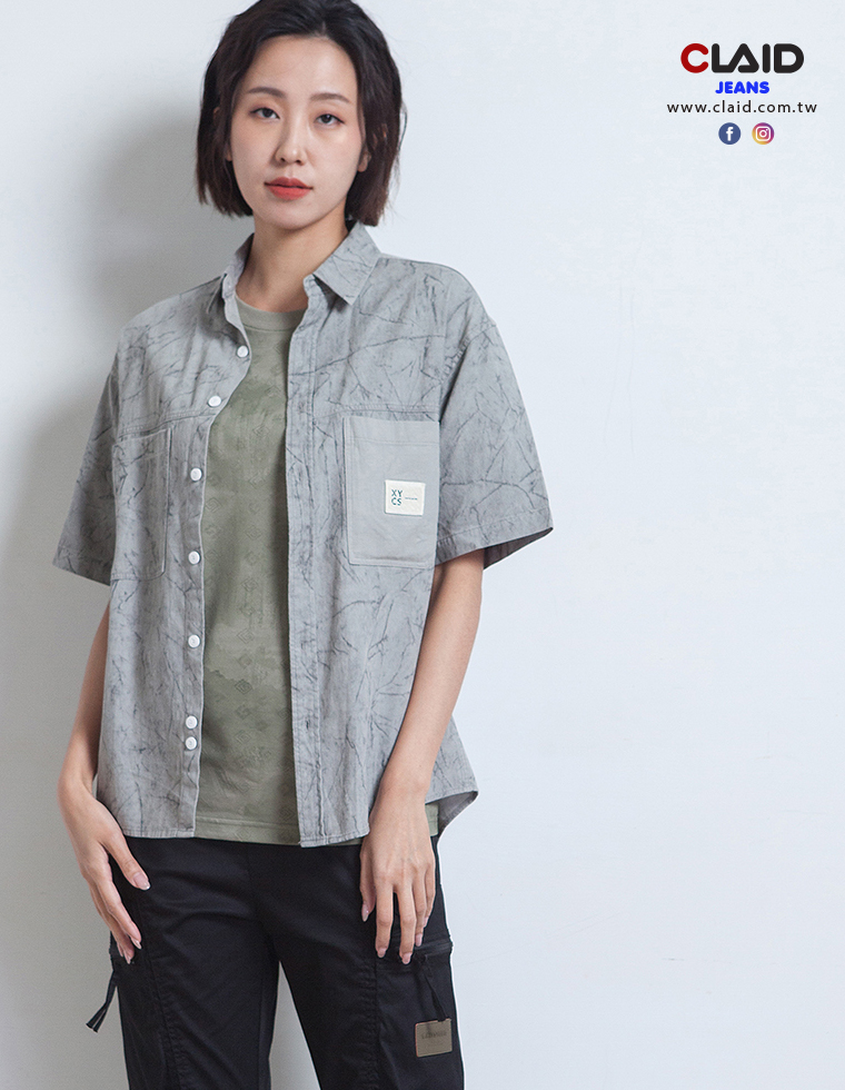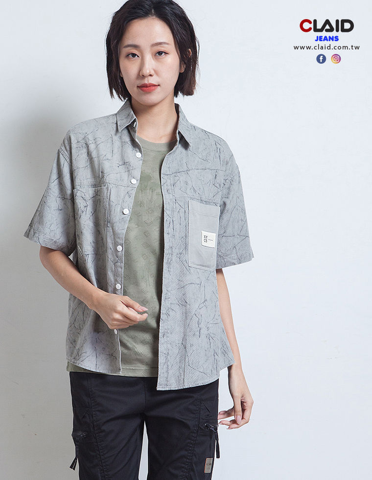 141355滿版大理石紋路元素中鬆版型棉料花襯衫