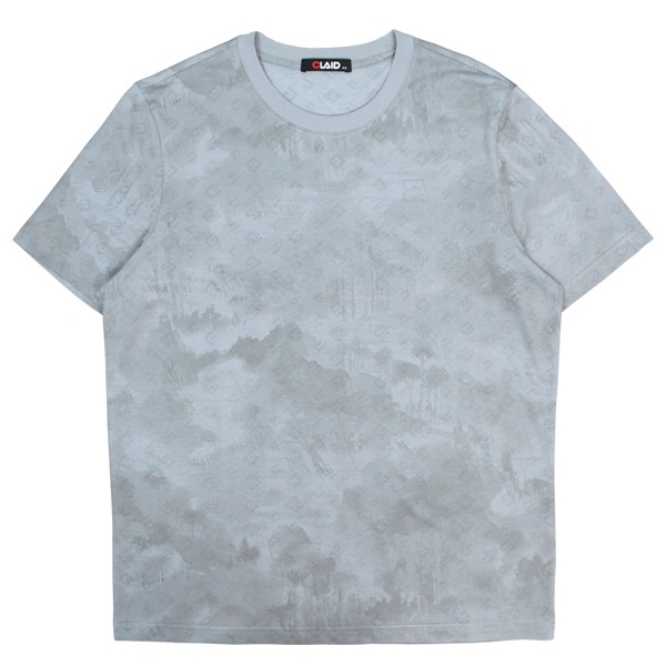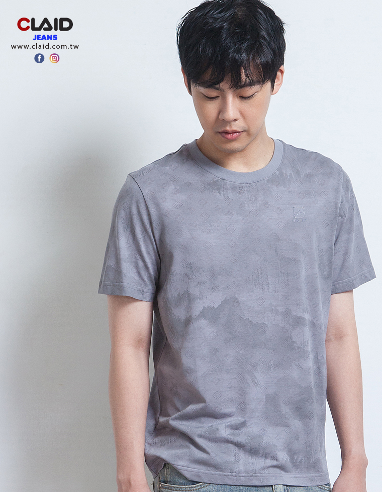 141221滿版水墨暈彩元素燒花工藝T恤-灰藍色