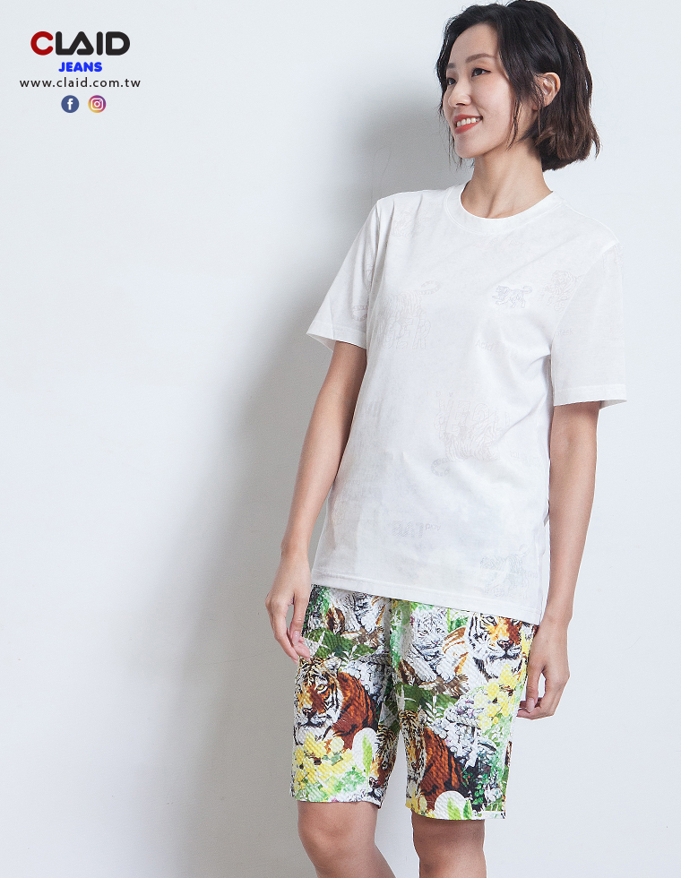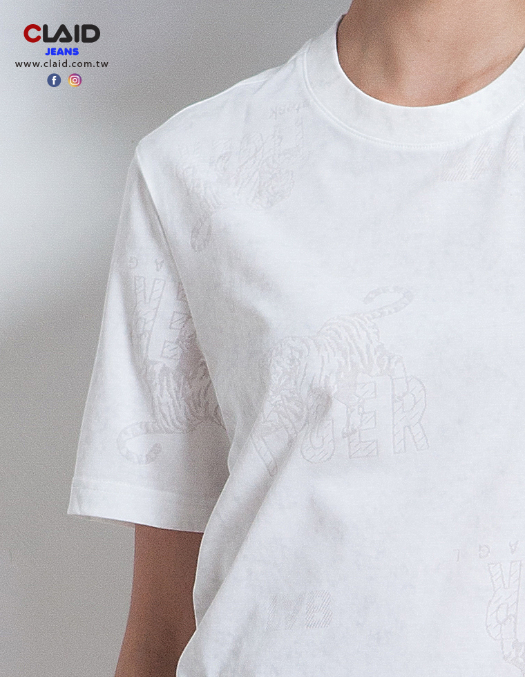 141222滿版老虎刺繡燒花工藝T恤-白色