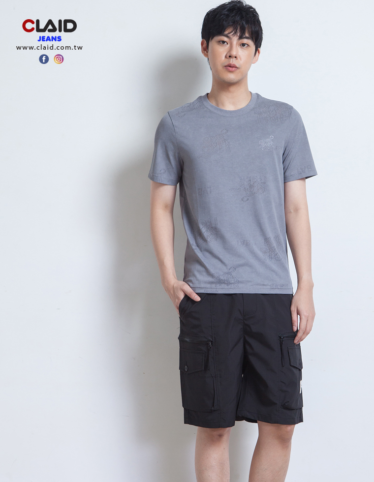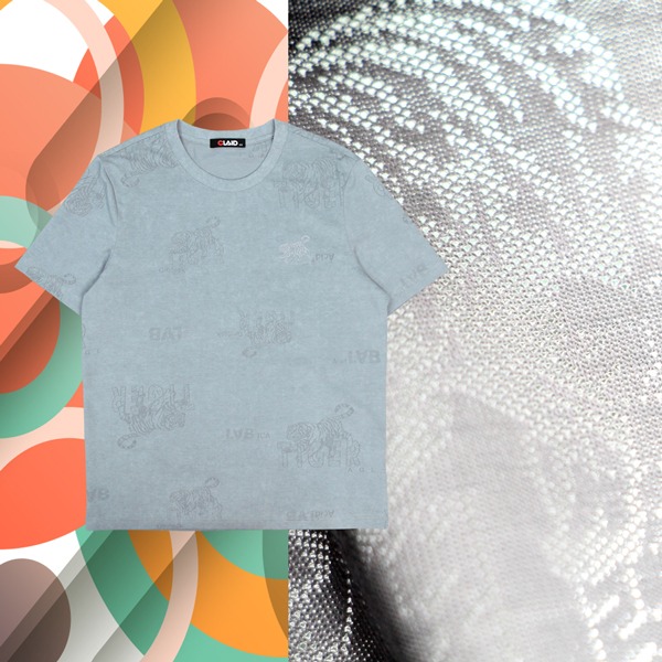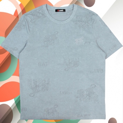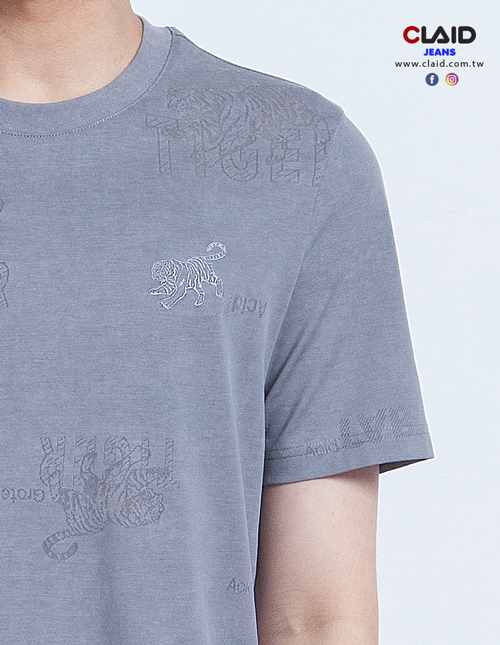 141222滿版老虎刺繡燒花工藝T恤-藍色